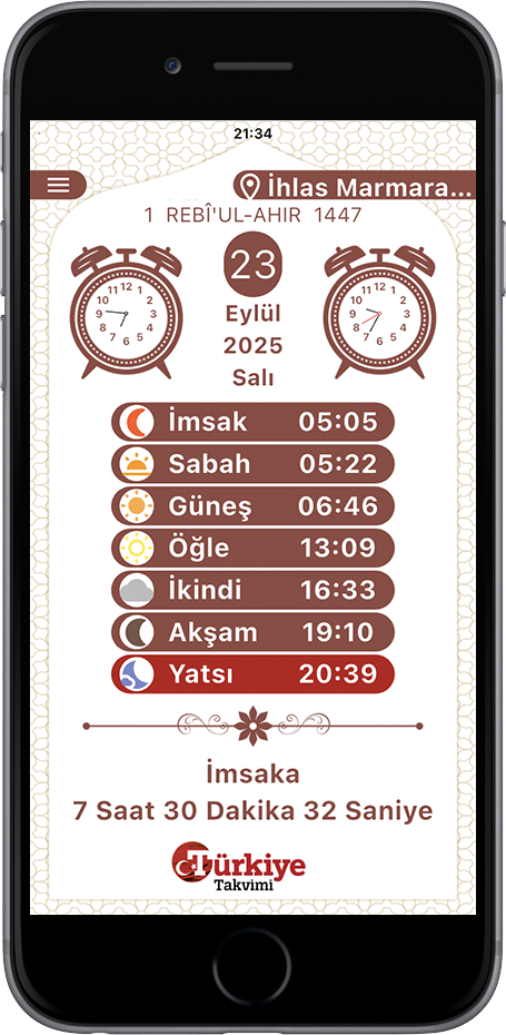 Türkiye Takvimi'ndeki dini, milli, tarihi ve kültürel değerlerimizle ilgili bilgiler; ehli sünnet alimlerinin kıymetli eserlerinden alınmış olup, insanların dünya huzuru ve ahiret saadetine kavuşmaları için büyük bir titizlikle hazırlanıp istifadelerine sunulmuştur. iOS 12.0 veya üst sürümünü gerektirir. https://apps.apple.com/tr/app/turkiye-takvimi/id6651851291?l=tr